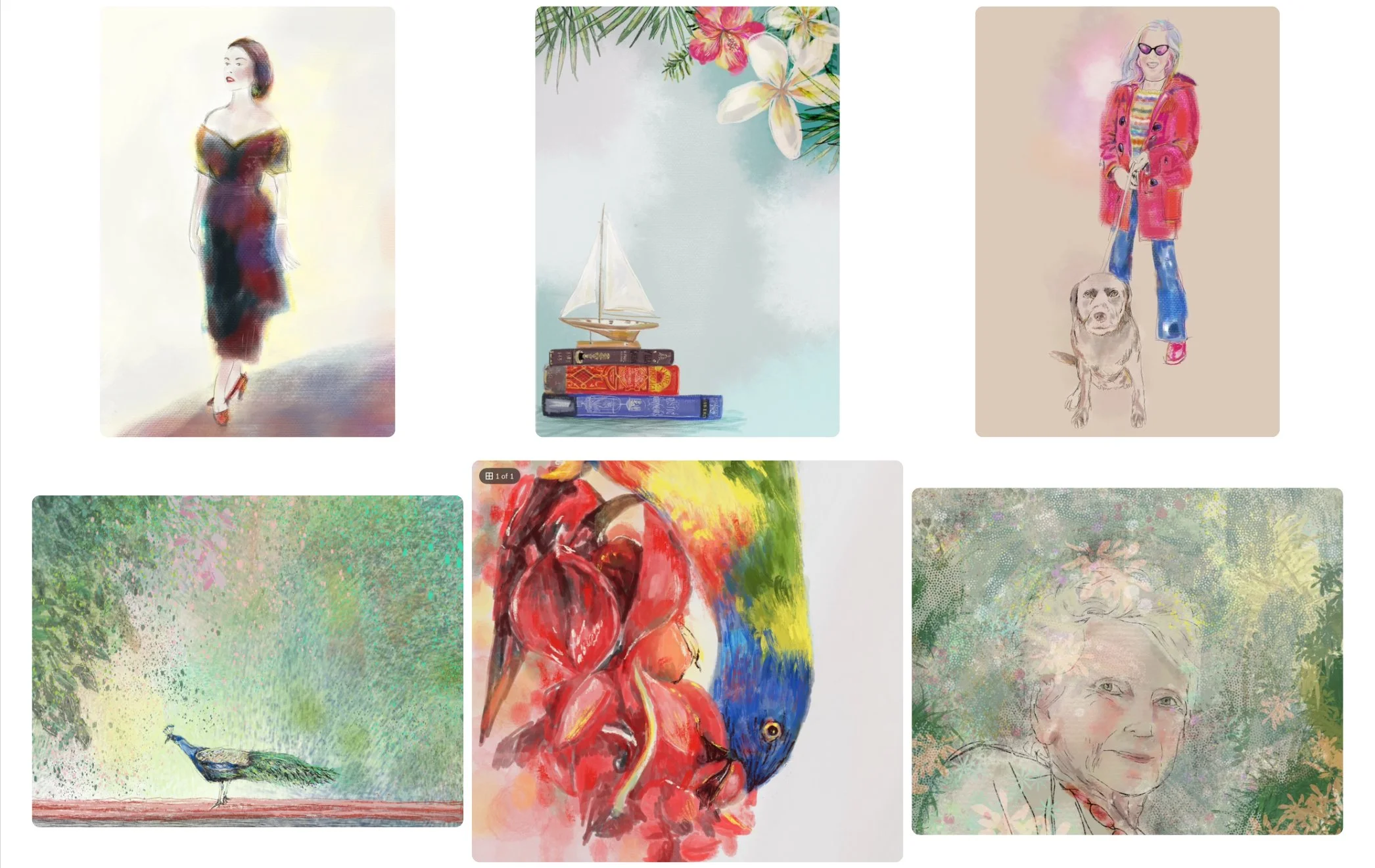 Since digital possibilities have emerged, I have migrated to these platforms, but very much still enjoy/pursue hand-drawing and watercolour, especially. I also create with mixed media, as I love layering and the possibilities inherent in paper..