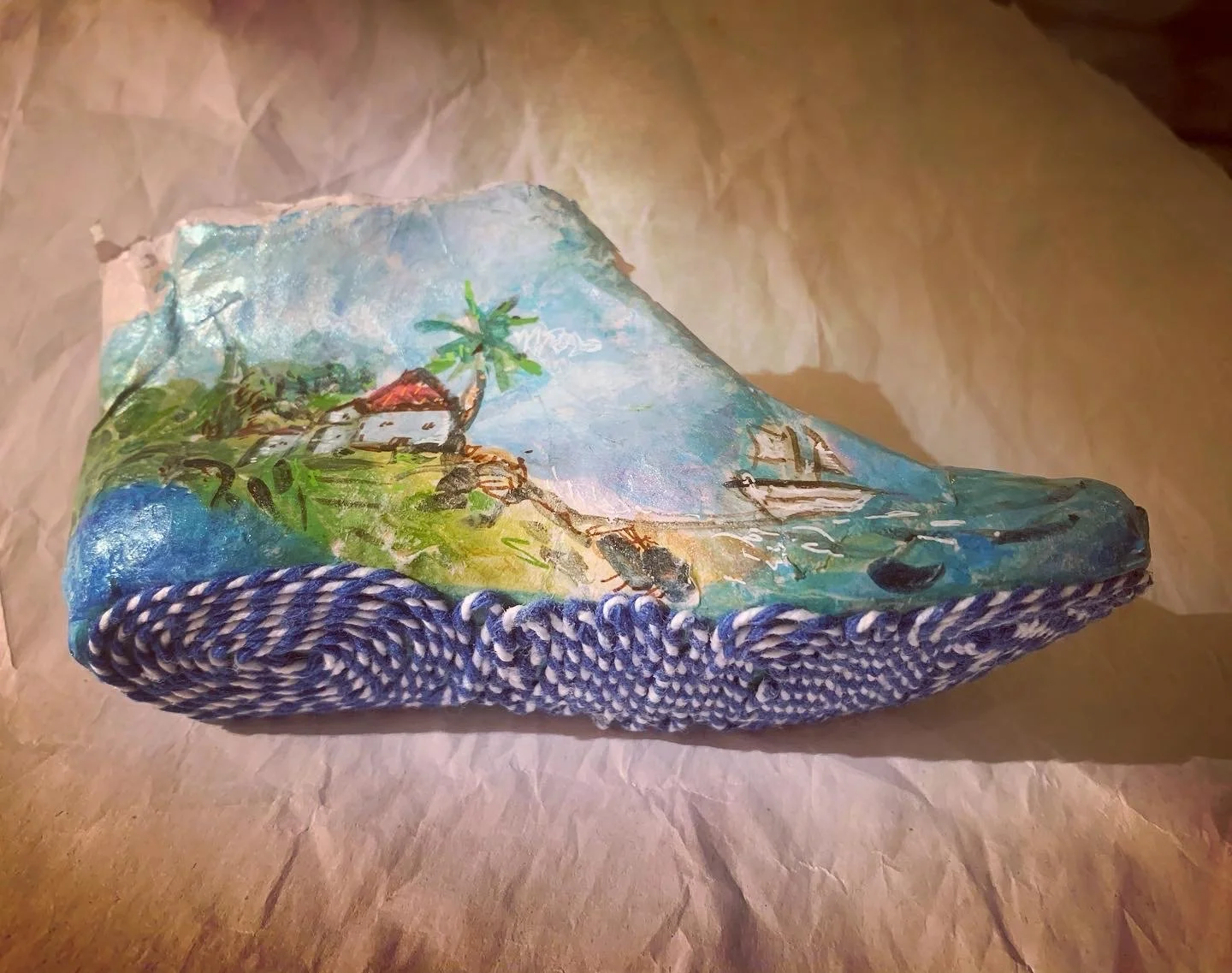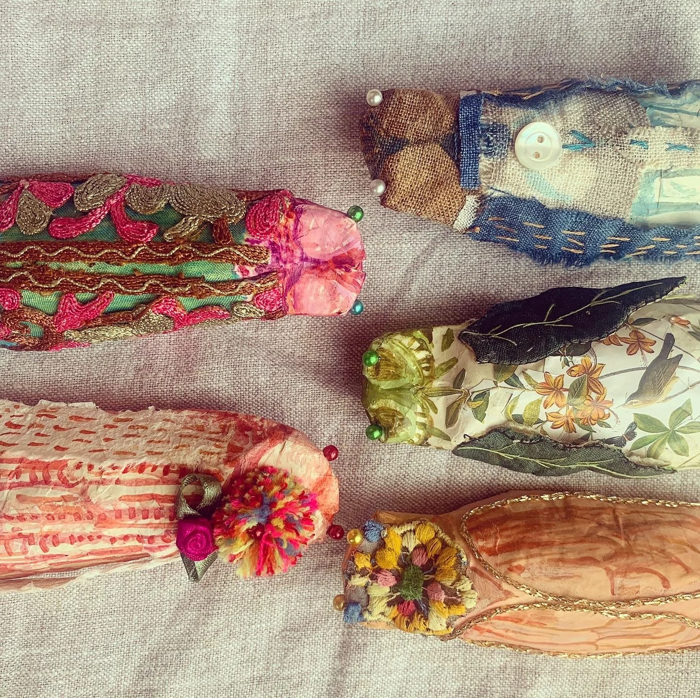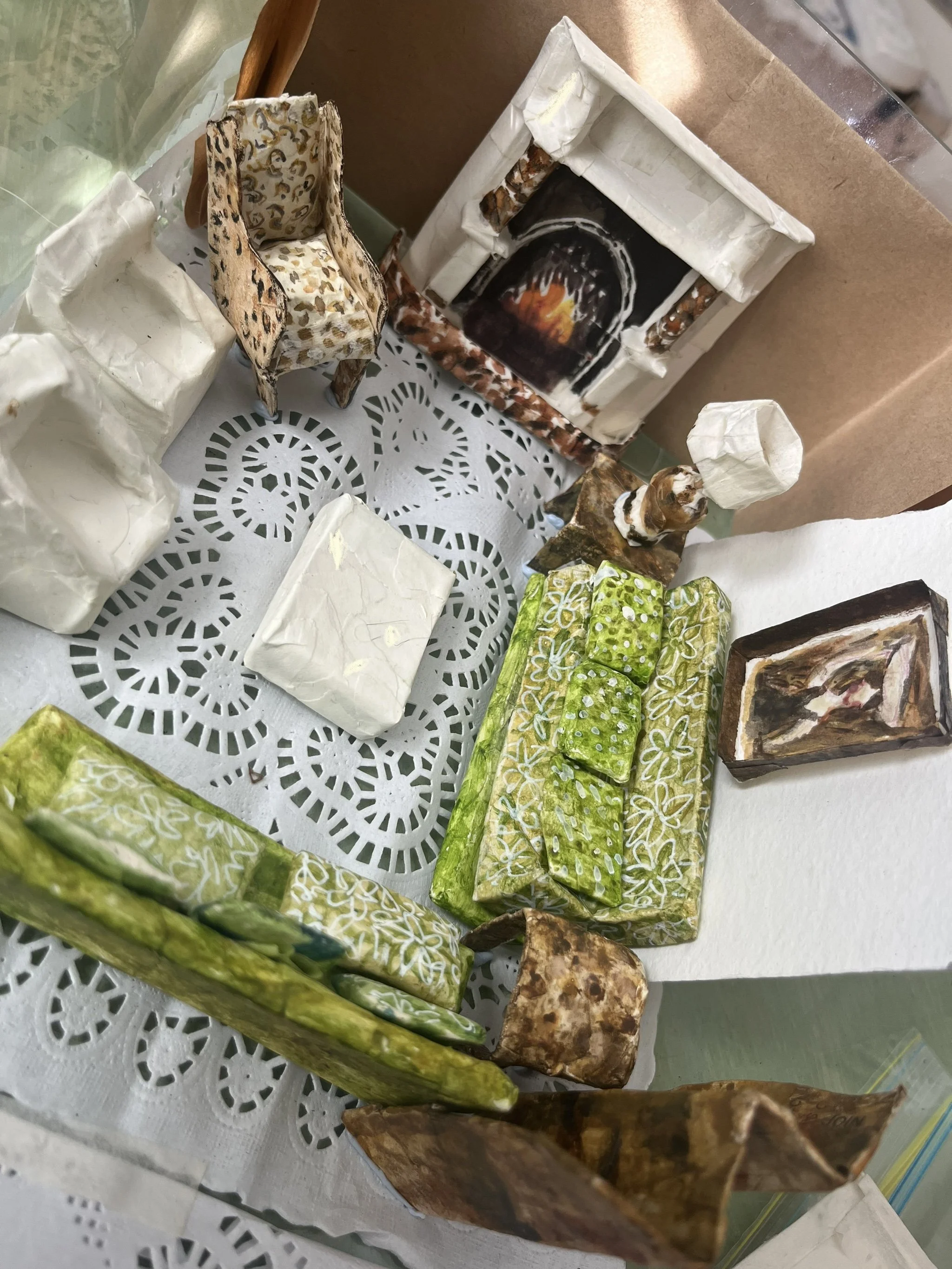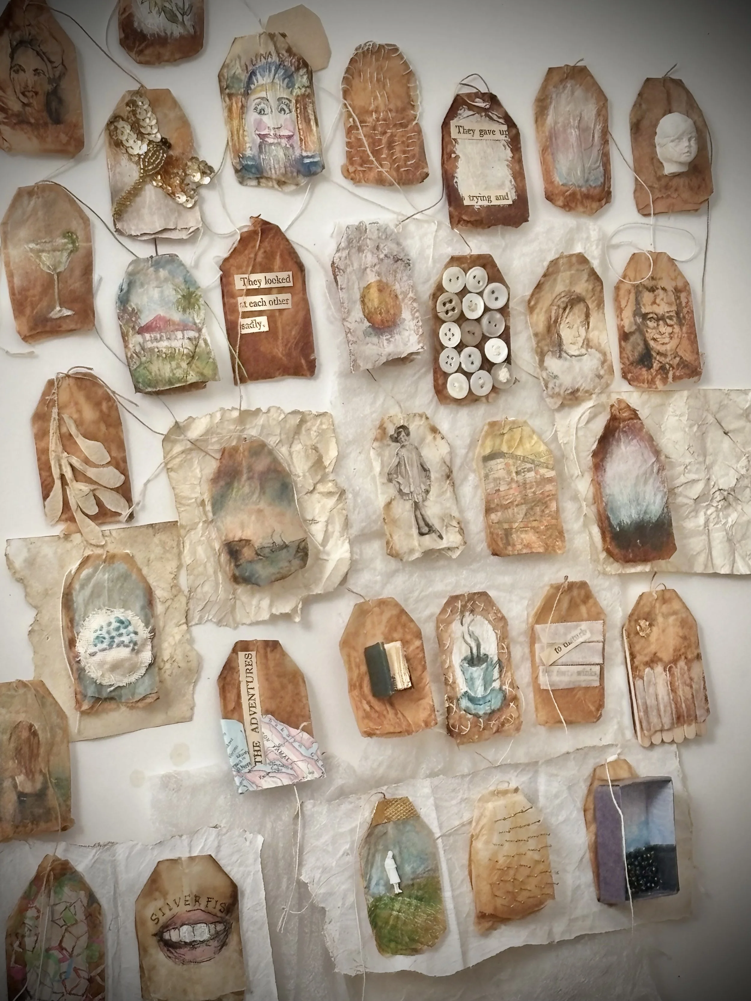 I have made small-scale artworks since childhood. Making things - especially small or tiny things, gives me Gulliver-sized pleasure. Though I work mostly in paper/paper-mache and paper clay, I also love creating junk jewellery, upcycled cloth dolls and painting on all manner of surfaces. Over the years I have had crushes on making series of items such as ‘paper shoes’, ‘cicadas’ and little ‘leaf books’. Little books are one of my great passions..