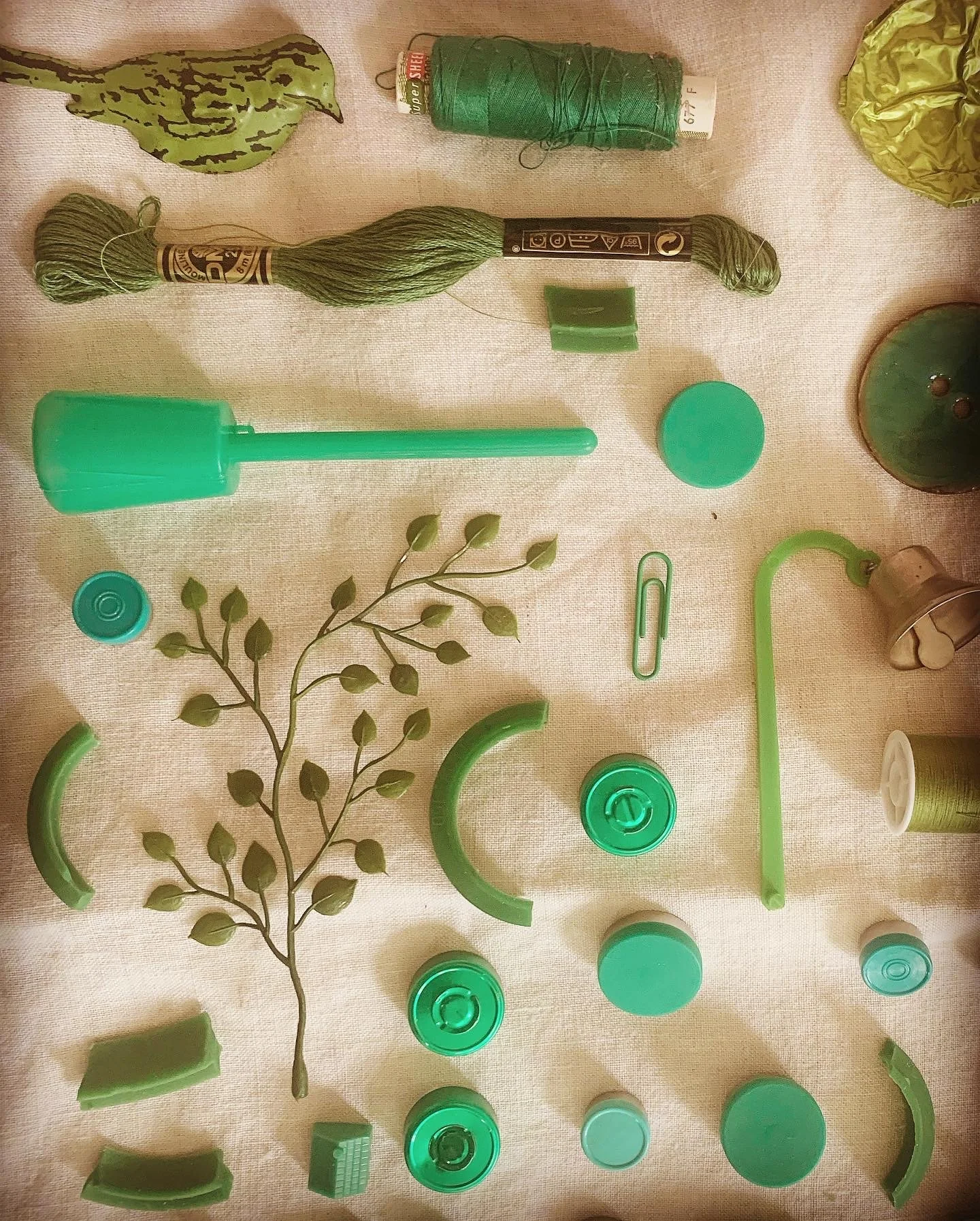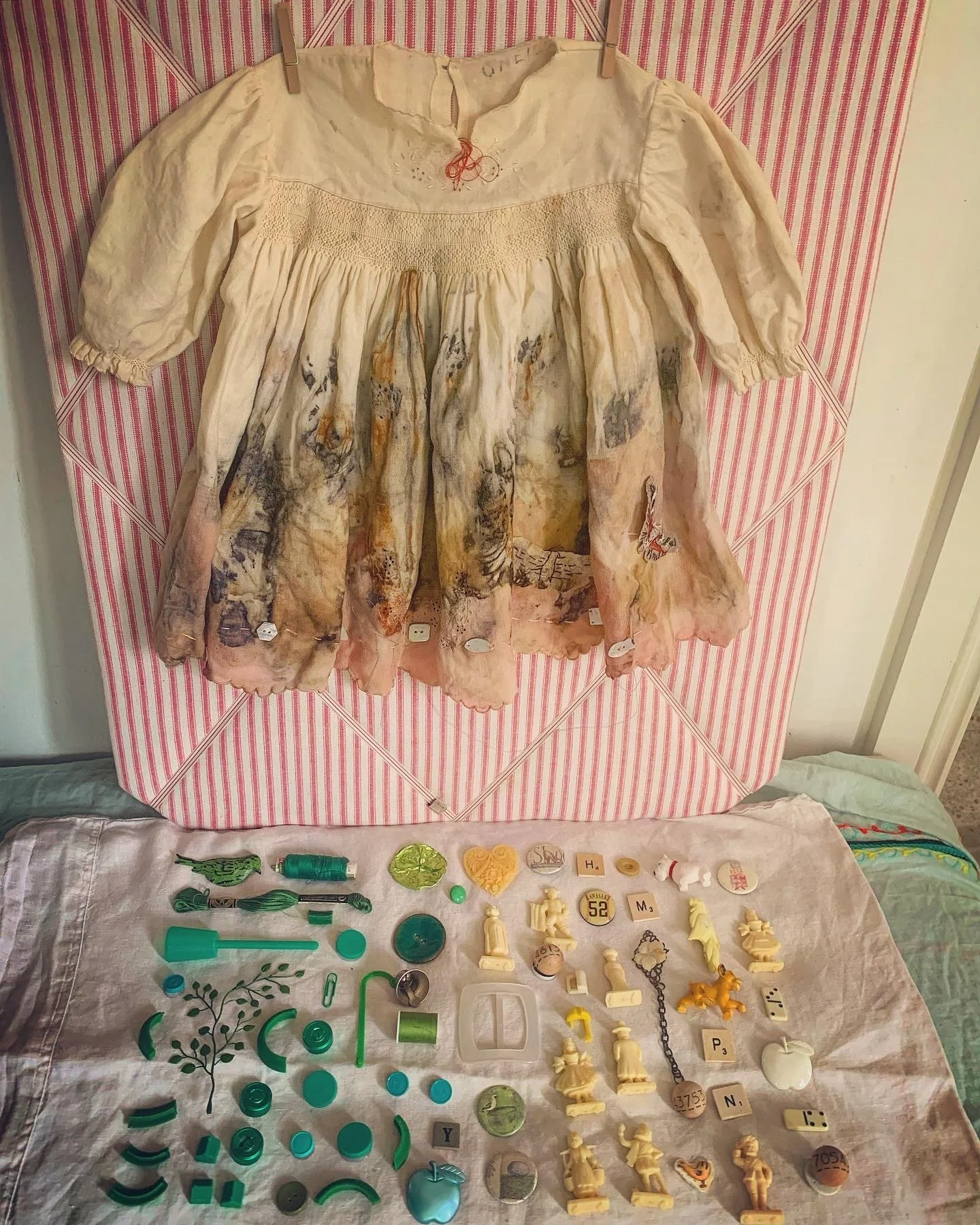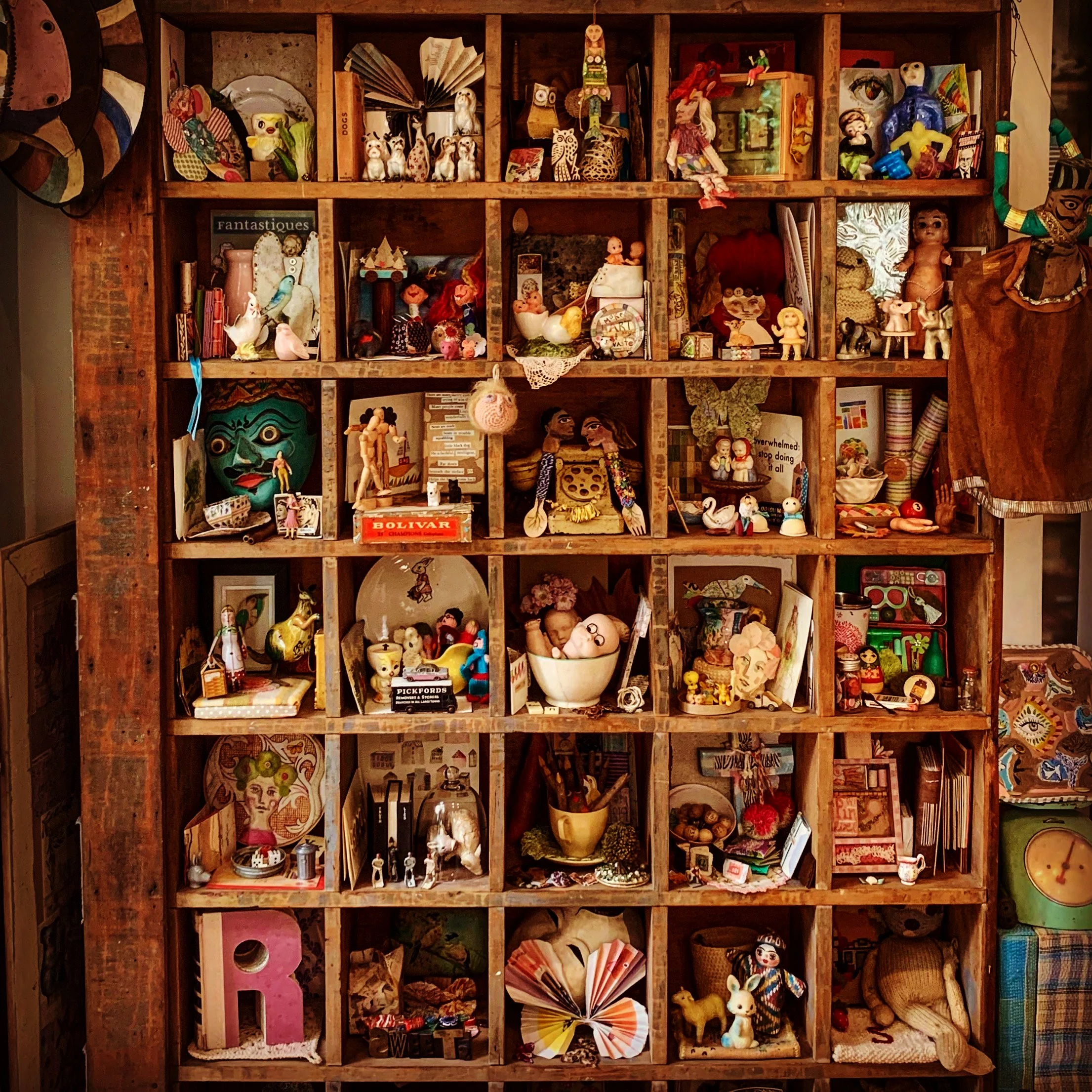 My ‘pigeon holes’ of found + received objects where much inspiration emerges