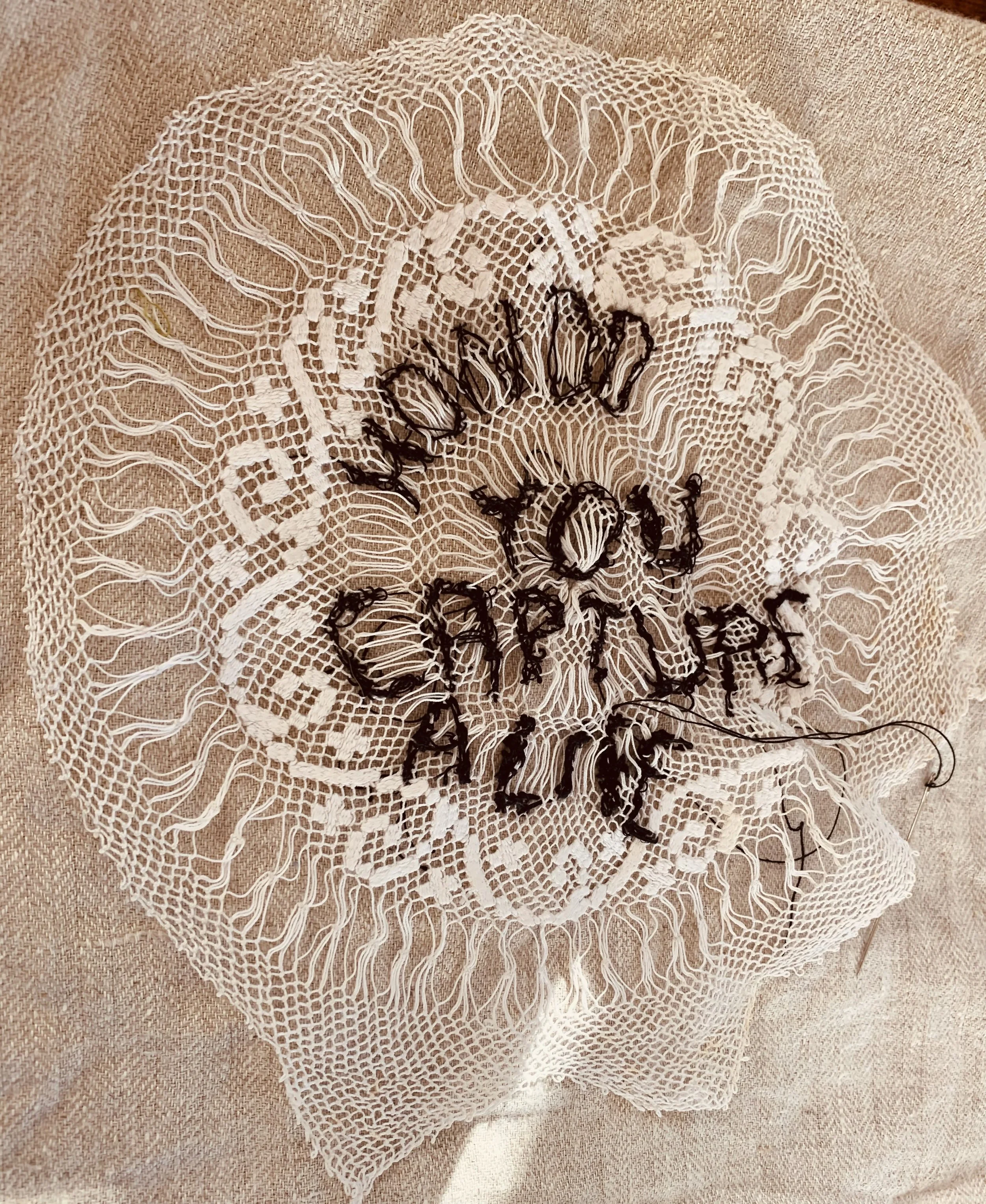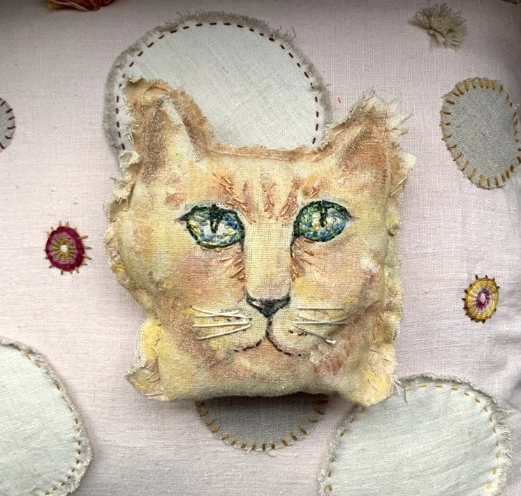 Cat pillow, painted + sewn