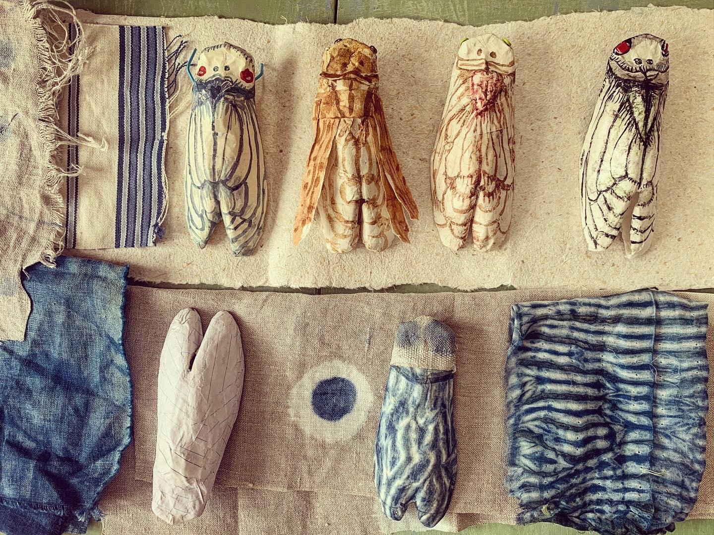 Paper + textile cicadas